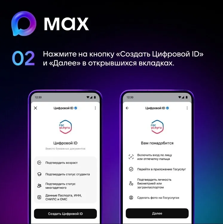 Важно: создание через биометрию или загранпаспорт даёт доступ к QR-кодам паспорта и подтверждения возраста. Через права — только подтверждение возраста.