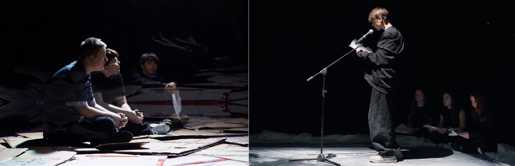 14 декабря прошёл итоговый показ лаборатории Театра горожан на тему «Подростки с правого берега». На сцену Красноярского ТЮЗа в этот раз вышли 7 подростков в черных брюках, темных рубашках и майках – выбранный стиль одежды и черный фон буклетов со ссылкой на чат психологической помощи определили серьезное отношение к начавшемуся спектаклю. Перед микрофонами парни и девушки рассказывали реальные и частично выдуманные истории о своей жизни на правобережье Красноярска, меняясь их авторством друг с другом; часть текстов транслировалась на экране, сопровождаясь аудиозаписью голосов.